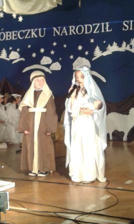 Tradycją naszej szkoły są coroczne jasełka przygotowywane przez uczniów oraz kiermasz ozdób choinkowych i ciast pieczonych przez rodziców. Nie inaczej było w tym roku: 22.12.2016.o godzinie 15.30, w pięknie udekorowanej hali gimnastycznej wystąpiły klasy drugie pod opieką p. Aleksandry Kopacz i p. Lucyny Polańskiej oraz uczniowie klasy szóstej pod opieką p. Marii Wacław. Całą uroczystość uświetnił taniec w wykonaniu przedszkolaków z koła tanecznego pod opieką p. Elżbiety Leśniak. Piękna scenografia wprowadziła zgromadzoną publiczność w świąteczny nastrój. O dobrą zabawę i miłe doznania słuchowe zadbali zaś zdolni aktorzy i wokaliści. Publiczność po raz kolejny mogła przeżyć historię Marii i Józefa szukających miejsca do schronienia, do których przybyli mędrcy, pasterze i aniołowie złożyć dzieciątku pokłon. Całość przedstawienia przeplatana była kolędami i pastorałkami. Szóstoklasiści zaśpiewali kolędy w języku angielskim. Ogromne zaangażowanie młodych aktorów opłaciło się, gdyż przedstawienie wywarło duże wrażenie i poruszenie, a przygotowane przez rodziców smakołyki zostały szybko sprzedane. W świątecznych nastrojach i po udanych zakupach wszyscy rozeszli się do domów.