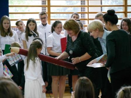 W dniu 4 września uczniowie przekroczyli progi szkoły po wakacyjnym odpoczynku. Powitanie całej społeczności szkolnej połączone było z odświętną akademią, na której odbyło się uroczyste powitanie i ślubowanie najmłodszych – uczniów klasy I, pod opieką wychowawczyni Małgorzaty Palarskiej i czujnym okiem Pani Dyrektor Elżbiety Fidelus.