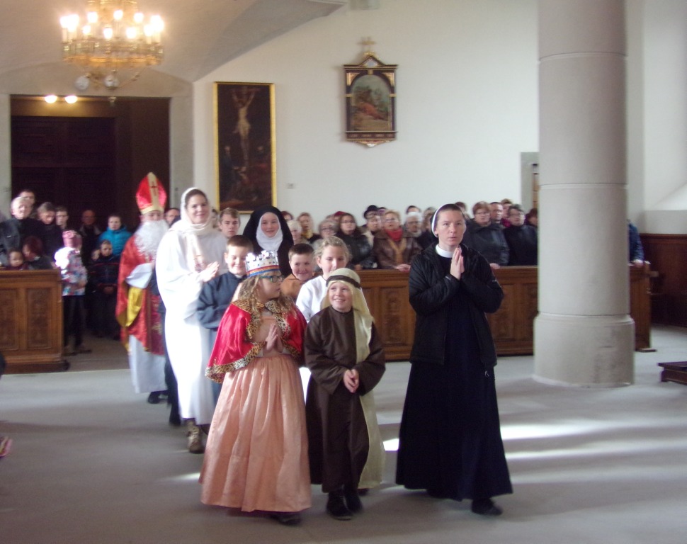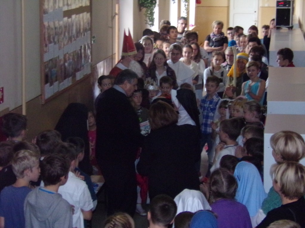 Na naszym korytarzu nie zabrakło więc świętych dzieci – Imeldy, Hiacynty i Łucji, młodzieży: Filomeny, Karolinki, Bernadetty, czy Dominika Savio, sióstr i braci zakonnych: Amelii, Rity, Franciszka, Antoniego, Teresy, królów: Jadwigi i Kacpra, księżniczki Katarzyny, bogatego ziemianina Huberta , żołnierzy: Floriana i Krzysztofa, służącej: Anieli, wychowawcy dzieci: Edmunda, kapłanów: ks. Jerzego, biskupów; Wojciecha i Mikołaja oraz samego Ojca świętego Jana Pawła II. Były także postacie biblijne: Marty, Łukasza, Pawła z Tarsu, Weroniki, Józefa z Nazaretu aniołów czy Najświętszej Maryi Panny. Jak widać - świętość jest dostępna dla każdego bez względu na wiek.