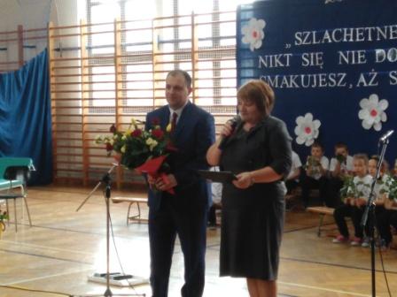 Na wstępie uroczystości pani Dyrektor mgr Elżbieta Fidelus powitała wszystkich zaproszonych gości, po czym pan wójt Łukasz Palarski składając kwiaty na ręce pani doktor Janiny Lenartowicz podziękował za ogromny trud, jaki służba zdrowia wkłada w swoją pracę.