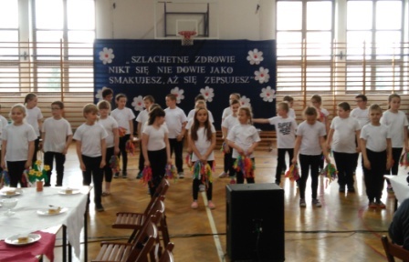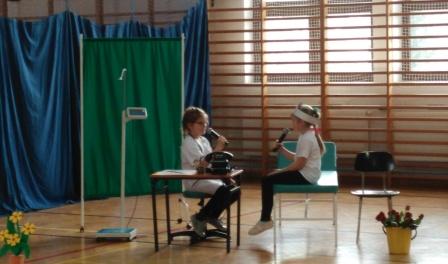 Następnie uczniowie klas trzecich Szkoły Podstawowej, przygotowani pod kierunkiem pań Aleksandry Kopacz i Lucyny Polańskiej przedstawili montaż słowno – muzyczny, ukazujący również w humorystyczny sposób, obowiązki służb medycznych. Kwiaty wręczone wszystkim przybyłym na uroczystość stały się symbolem wdzięczności za ratowanie każdego ludzkiego życia. Spotkanie uświetniła dekoracja przygotowana przez panią Magdalenę Żmudka.