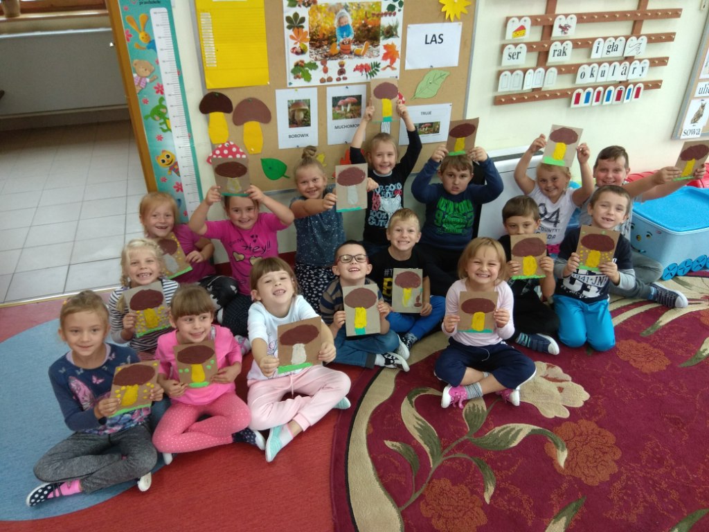 W poniedziałek 24. września przedszkolaki świętowały Dzień Grzyba. Niesprzyjająca pogoda spowodowała, że dzieci nie wybrały się na prawdziwe grzybobranie do lasu, ale również i w przedszkolu zdobyły wiele interesujących wiadomości na temat grzybów. Dzień Grzyba był doskonałą okazją do ciekawych i wartościowych zajęć, podczas których dzieci poznały różnorodne ich gatunki, dowiedziały się, które są jadalne, a które trujące, a także poznały ich budowę oraz wykorzystanie w kuchni. Przedszkolaki wykonały także różnymi technikami piękne prace plastyczne, które ozdobiły przedszkolną galerię.