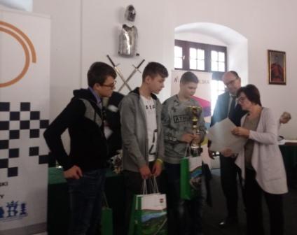 Oprócz nagród indywidualnych, szkoła otrzymała zestawy do gry w szachy (plansze, bierki, zegary) oraz prawo reprezentowania naszej szkoły, gminy i powiatu w finale wojewódzkim który odbędzie się, 20 listopada 2018 roku w Krakowie w Muzeum Armii Krajowej. (tf)