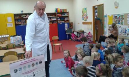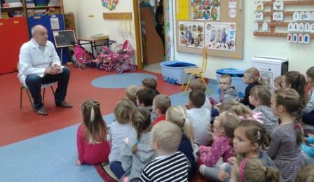 21 listopada, Przedszkole w Zembrzycach odwiedził weterynarz - Pan Marcin Benisz. Celem spotkania było poznanie pracy lekarza weterynarii, zdobycie wiedzy na temat dbania o pielęgnowania zwierząt domowych, a także kształtowanie postaw humanitarnych w stosunku do zwierząt. Przedszkolaki słuchały z ogromnym zaciekawieniem tego, o czym mówił ich Gość, szczególnie gdy opowiadał o niecodziennych przypadkach ze swojej pracy np. o operacji tygrysa. Dowiedziały się również, że nie wolno głaskać i zaczepiać nieznanych im zwierząt, które spotykają na drodze oraz dlaczego zawsze po zabawie z pupilem należy umyć ręce. Dzieci chętnie dzieliły się także spostrzeżeniami dotyczącymi zwierząt, które posiadają w domu. Na zakończenie spotkania, przedszkolaki podziękowały Panu weterynarzowi za wizytę i wręczyły laurkę.(zk)