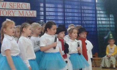 11. stycznia halę sportową Zespołu Szkół w Zembrzycach wypełnili nie tylko dziadkowie oraz babcie, ale także postacie z najbardziej znanych bajek. Pojawiły się m.in. księżniczki, wróżki, krasnoludki, a także Jaś i Małgosia oraz Czerwony Kapturek i Wilk. Przedszkolaki recytowały wierszyki, śpiewały piosenki, a także prezentowały swoje umiejętności taneczne, wykonując taniec Śnieżynek i Bałwanków, taniec Babuszek oraz Polkę. Program artystyczny dzieci uświetnił występ pana Macieja Kupca.
