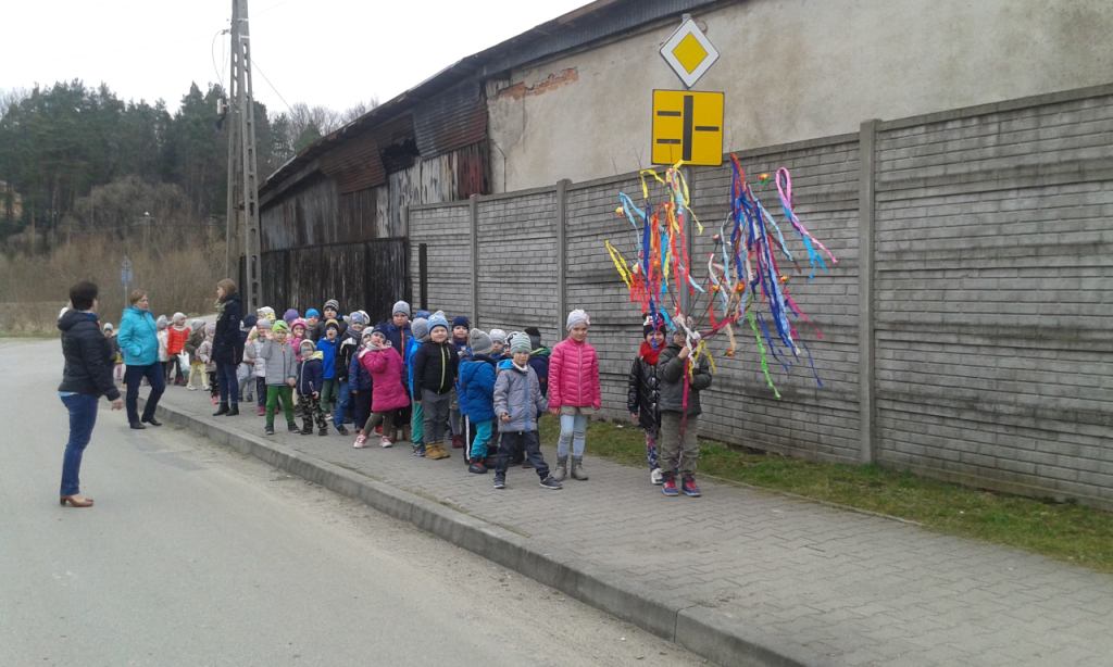 Przyjście nowej pory roku – wiosny jest doskonałą okazją do tego, by uświadomić dzieciom, jak ważna jest budząca się do życia przyroda. W naszym Przedszkolu zmieniły się dekoracje przedszkolne, zazieleniły się kąciki przyrody, na gazetkach pojawiły się wiosenne prace plastyczne, a dzieci wypatrywały zwiastunów wiosny. 21. marca każde dziecko miało zielony lub żółty strój, więc w przedszkolu panował prawdziwie wiosenny nastrój. Wszystkie przedszkolaki wraz ze swoimi paniami wybrały się na wiosenny spacer, aby przywitać Panią Wiosnę. Dzieci radośnie śpiewały piosenki oraz mówiły wierszyki. Na zakończenie pochodu powitano Wiosnę kolorowymi gaikami, które zabrano do Przedszkola. Przedszkolaki mają nadzieję, że Wiosna zagościła u nas na dobre.