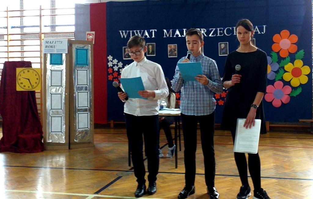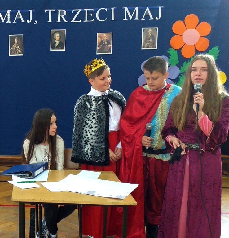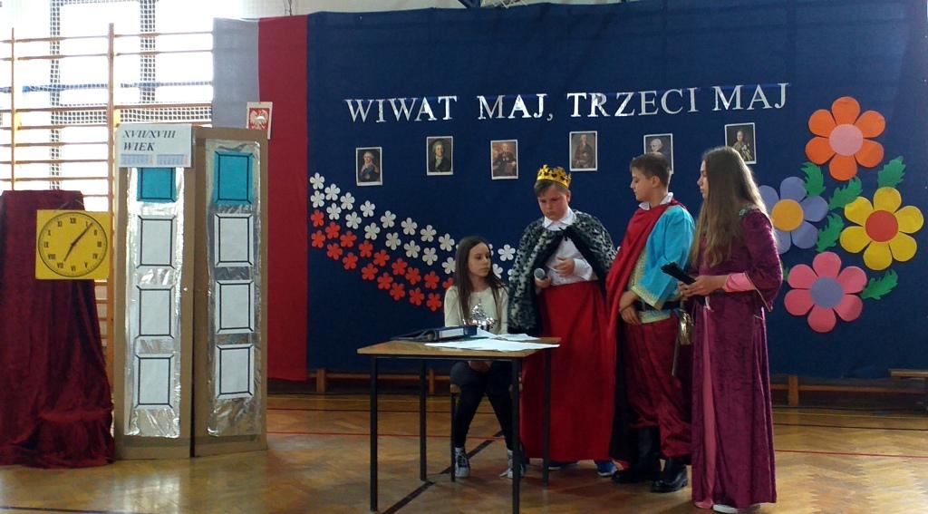 „Wiwat maj, trzeci maj” pod takim hasłem celebrowaliśmy w Zespole Szkół w Zembrzycach tegoroczne obchody święta Konstytucji 3 maja. Podczas uroczystej akademii szkolnej przygotowanej przez uczniów klasy 6 pod opieką pani Anny Palarskiej szukaliśmy odpowiedzi na pytanie: Komu potrzebna jest historia? Apel miał na celu uświadomić wszystkim zebranym jak bardzo potrzebna jest znajomość historii naszego kraju - nam wszystkim, każdemu z nas. Występujący przenieśli nas w czasie do XVII i XVIII wieku, by przypomnieć nam najważniejsze wydarzenia związane z uchwaleniem Konstytucji 3 maja.