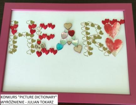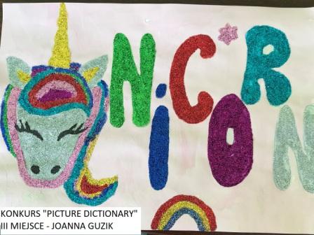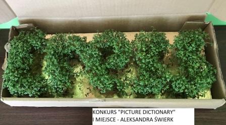 Uczniowie klas 1-3 SP mieli okazję wykazać się w konkursie językowo-plastycznym “Picture Dictionary”. Konkurs polegał na wykonaniu pracy plastycznej obrazującej znaczenie danego słowa w języku angielskim. Celem konkursu było przyswajanie poprawności ortograficznej oraz utrwalenie słownictwa za pośrednictwem działań artystycznych. W ramach konkursu prace oddało 20 uczniów, którzy zobrazowali takie słowa jak: serce, wielbłąd, słonecznik, rzeżucha, kredki, ciasto, piłka oraz wiele innych. Oceniający mieli bardzo trudne zadanie, lecz ostatecznie udało się wyłonić następujące miejsca:
