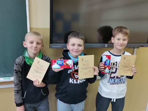 Uczniowie otrzymali dyplomy oraz słodkie upominki sfinansowane przez organizatorów konkursu. GRATULUJEMY!!! /ep/