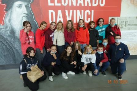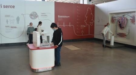 Dwupiętrowa wystawa skupia się wokół zainteresowań Leonarda Da Vinci, a że był on człowiekiem renesansu uczniowie obcowali m.in. ze sztuką, anatomią, budownictwem, matematyką. Stanowiska na parterze budynku skupiły uwagę uczniów na zagadnieniach związanych z budową i funkcjami życiowymi człowieka. Ta część nosi tytuł “Człowiek – niezwykła maszyna”. Można było dotknąć, zobaczyć, poczuć na własnej skórze: