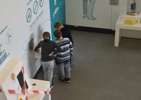 Na górnym piętrze uczniowie poznali zagadnienia ekologiczno – przyrodnicze. Wystawa “Człowiek-trybik w machinie przyrody” to stanowiska nawiązujące do tematów ochrony naszej planety: atmosfery, zasobów wodnych i różnorodności biologicznej. Ponadto można zobaczyć jak prawidłowo funkcjonują ekosystemy i jak racjonalnie gospodarować odpadami.