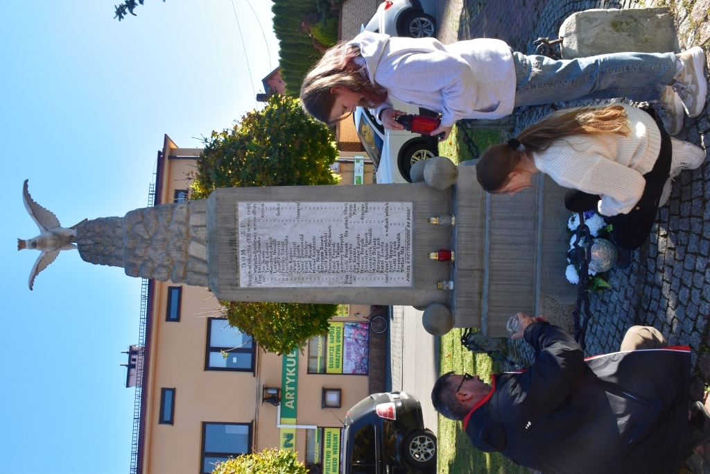 Złożyli wiązankę oraz znicze pod symbolicznym pomnikiem - grobem mieszkańców Zembrzyc poległym w latach 1914–1920 w czasie wojny światowej znajdującym się na Rynku w Zembrzycach.
