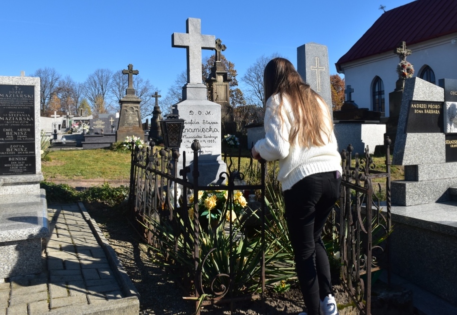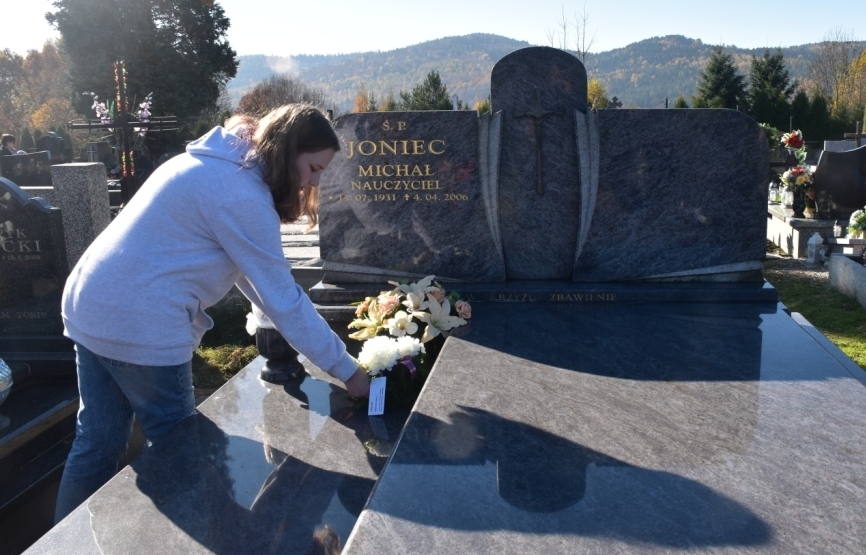 Uczniowie odwiedzili groby żołnierzy: Jana Zarzyckiego walczącego w bitwie pod Lipskiem w 1813 r., Pawła Kuligowskiego walczącego pod Monte Cassino, ostatniej właścicielki Zembrzyc Teofili Znamięckiej oraz groby nauczycieli.