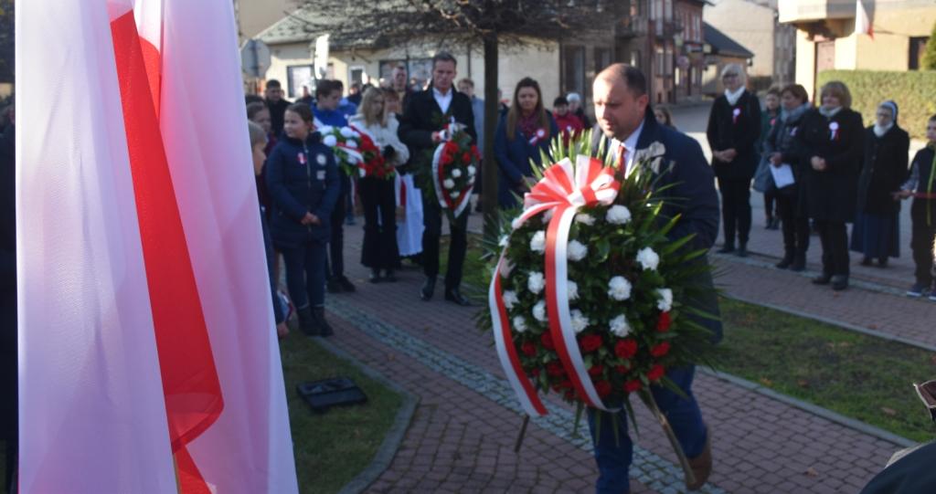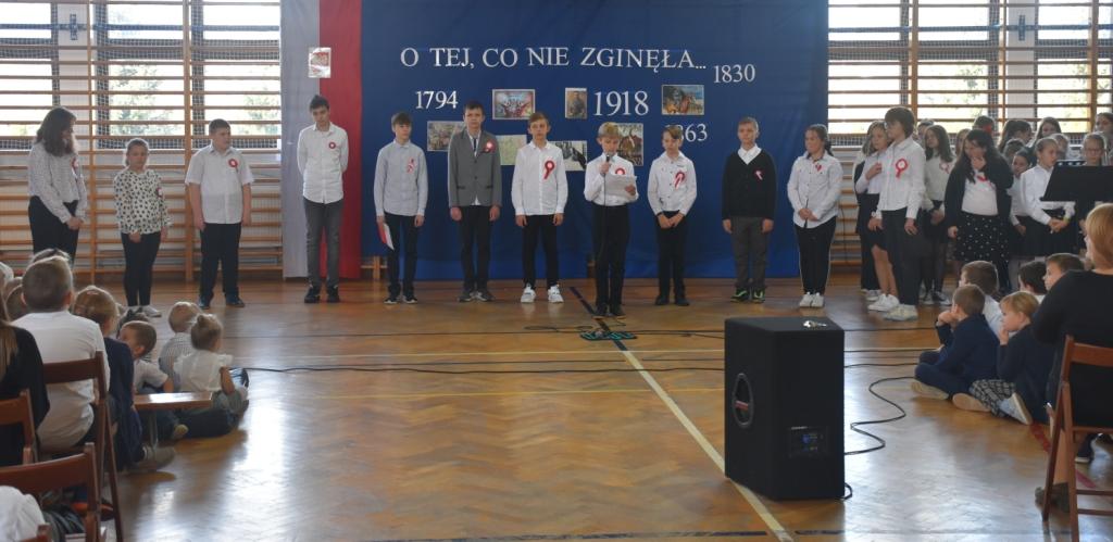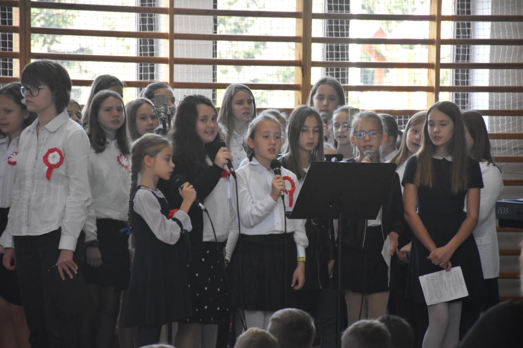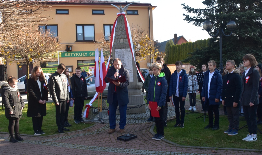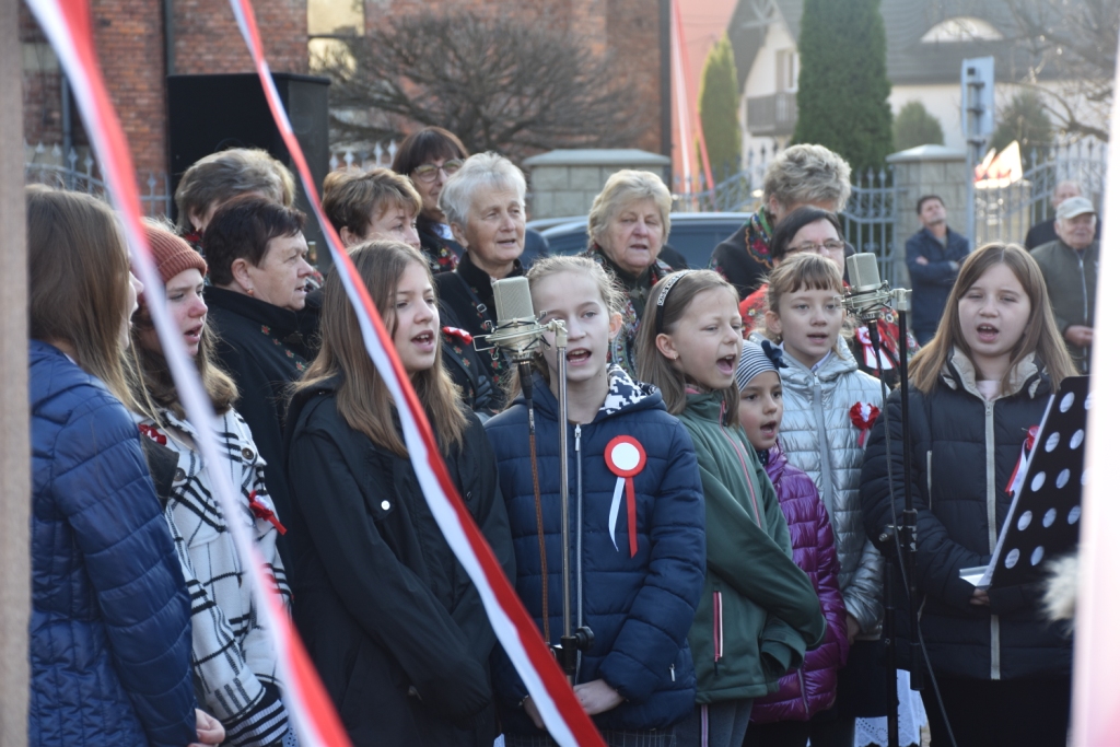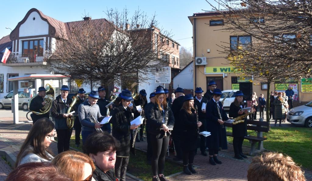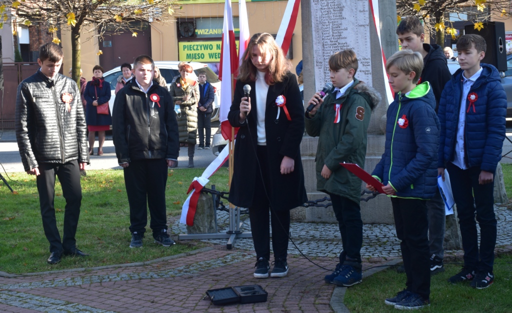 Obchody Narodowego Święta Niepodległości nabierają dziś szczególnego wymiaru, gdyż 11.11.2021 r. mogliśmy po przerwie spowodowanej pandemią, zgromadzić się przed pomnikiem upamiętniającym poległych w obronie Ojczyzny i w patriotycznym nastroju wspólnie świętować. 11 listopada to jedna z najważniejszych dat w historii naszej Ojczyzny. Po wielu latach niewoli Polska odzyskała niepodległość, a Polacy upragnioną wolność. Uroczyste obchody 103. Rocznicy odzyskania przez Polską niepodległości rozpoczęły się mszą św. o godz. 10 00 , którą odprawił ks. Proboszcz Z. Sala. Następnie przed pomnikiem na rynku w Zembrzycach młodzież przedstawiła montaż słowno – muzyczny. Uczniowie recytowali wiersze i śpiewali pieśni patriotyczne. Na piersi występujących i wielu zebranych dumnie prezentowały się kotyliony w biało – czerwonych barwach wykonane w ramach zajęć przez uczniów Zespołu Szkół w Zembrzycach. Występ uświetniły także występy Orkiestry Dętej „Rytm” pod batutą p. K. Gromady oraz Zespołu „Mioduszyna” pod przewodnictwem p. B. Cyganik. Piękne rytmy patriotycznych pieśni w wykonaniu zembrzyckiej orkiestry czy pieśni wyśpiewane przez Zespół „Mioduszyna” i uczniów zachwyciły wszystkich zebranych na uroczystości.