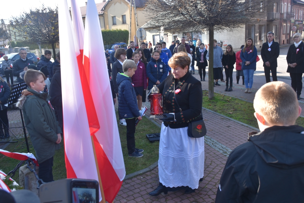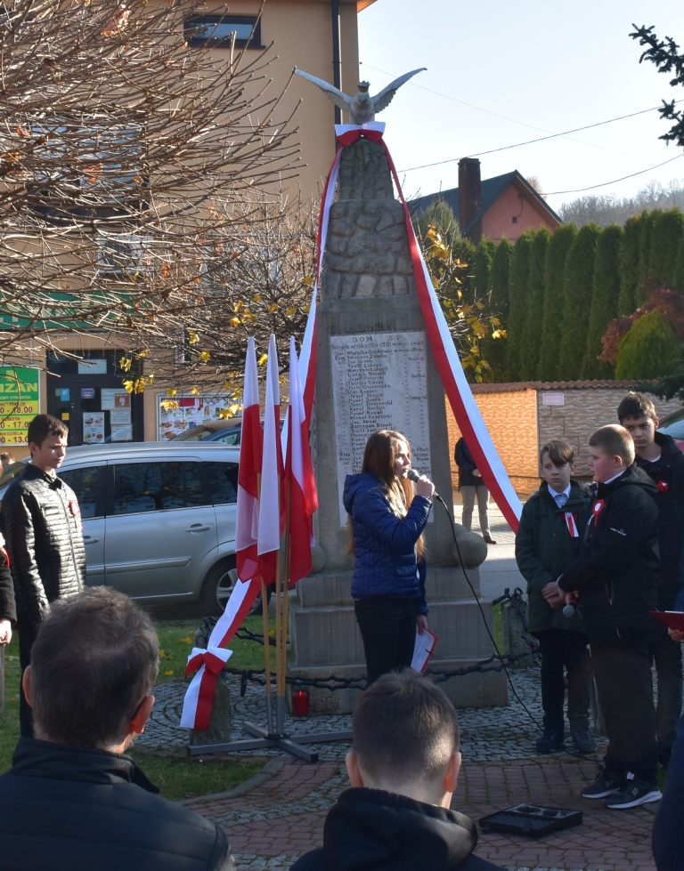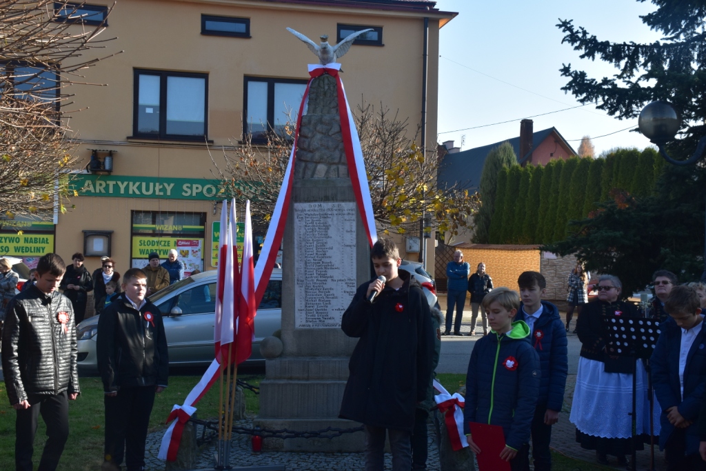 Ważnym punktem obchodów był Apel Poległych. Po jego odczytaniu przedstawiciele władz Gminy Zembrzyce na czele z panem Wójtem Ł. Palarskim, delegacji zespołu „Mioduszyna” oraz uczniowie złożyli wiązanki kwiatów i zapalili znicze dla uczczenia pamięci obrońców Ojczyzny. W trakcie obchodów głos zabrał p. Wójt Ł. Palarski, podkreślając rolę żołnierzy walczących o wolność wspólnego domu, któremu na imię Polska. Pani Dyrektor Zespołu Szkół w Zembrzycach E. Fidelus podziękowała wszystkim występującym raz nauczycielom, którzy przygotowali młodzież i przyczynili się do uświetnienia obchodów i ich uroczystej oprawy. Są to: p. E. Stopa, p. A. Talaga, p. E. Kiepura, p. M. Żmudka. Życzyła wszystkim zgromadzonym radosnego świętowania i możliwości uczestnictwa w kolejnych rocznicach, gdyż pandemia 2019 i 2020 r. odebrała wszystkim taką możliwość. Zwróciła także uwagę, że udział młodzieży w obchodach Święta Niepodległości jest żywą lekcją historii, która kształtuje patriotyzm, przywiązanie do swojej Ojczyzny, ziemi rodzinnej, szacunek dla symboli narodowych.
