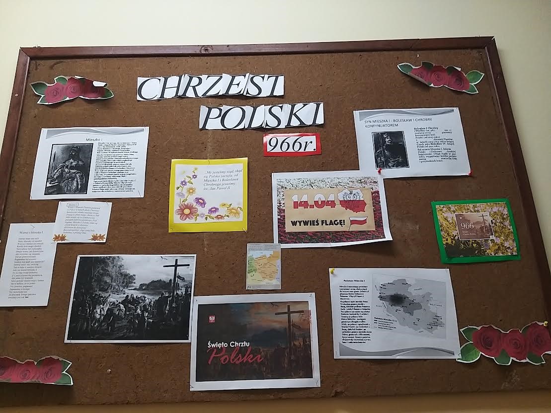 Uczennice klasy 7b zebrały informacje na temat tego ważnego wydarzenia i przygotowały gazetkę ścienną, by przybliżyć społeczności uczniowskiej wpływ chrześcijaństwa na rozwój Polski.