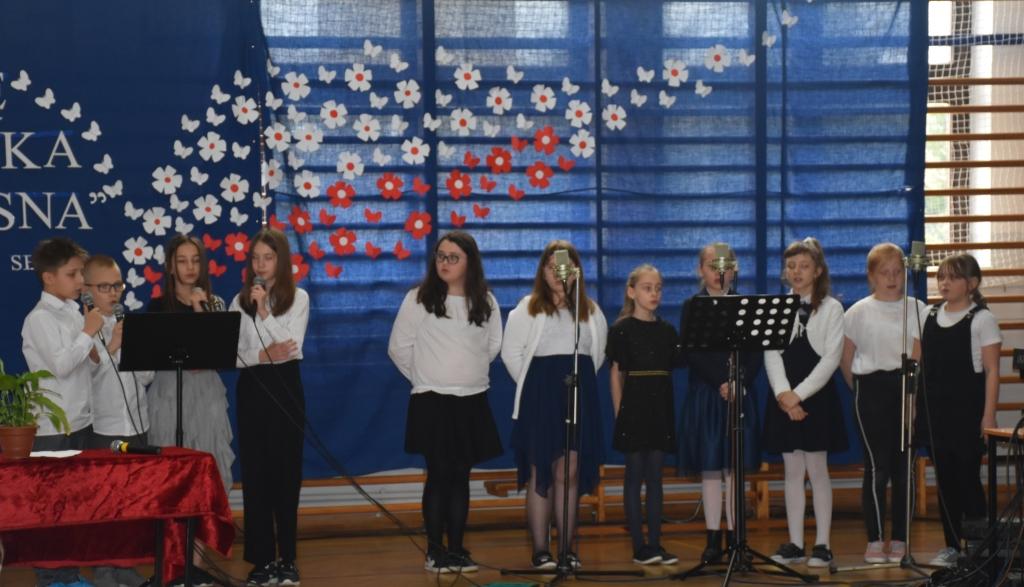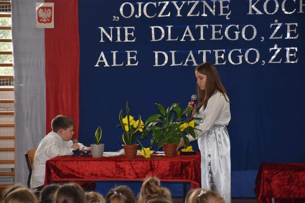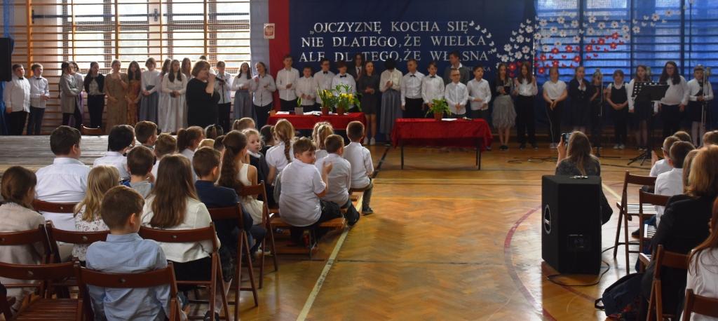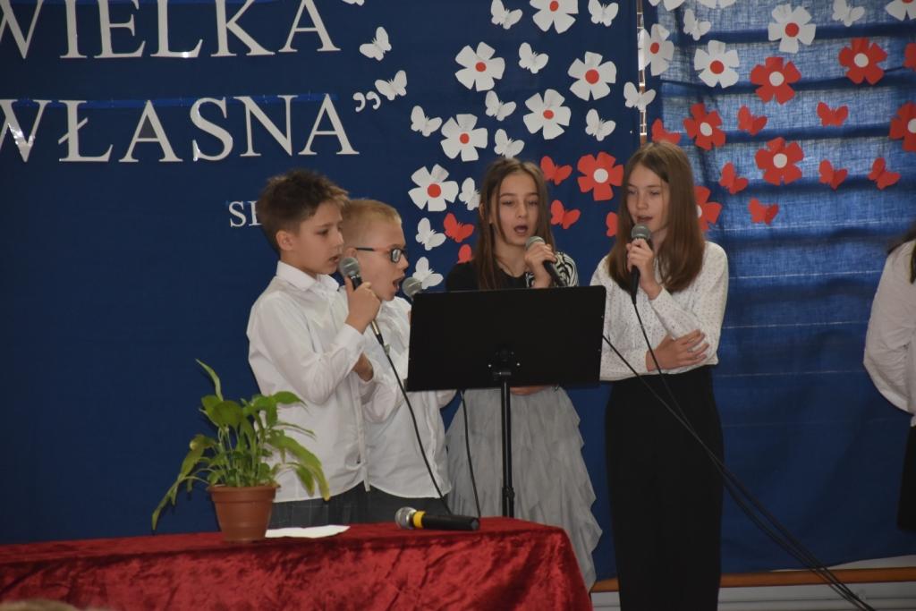 Podczas występu wybrzmiały nie tylko wydarzenia związane z historią Konstytucji Majowej, ale również ze Świętem Matki Boskiej Królowej Polski.