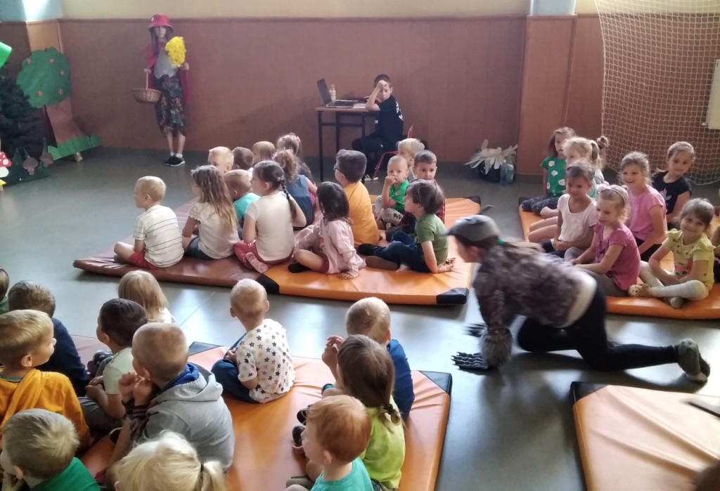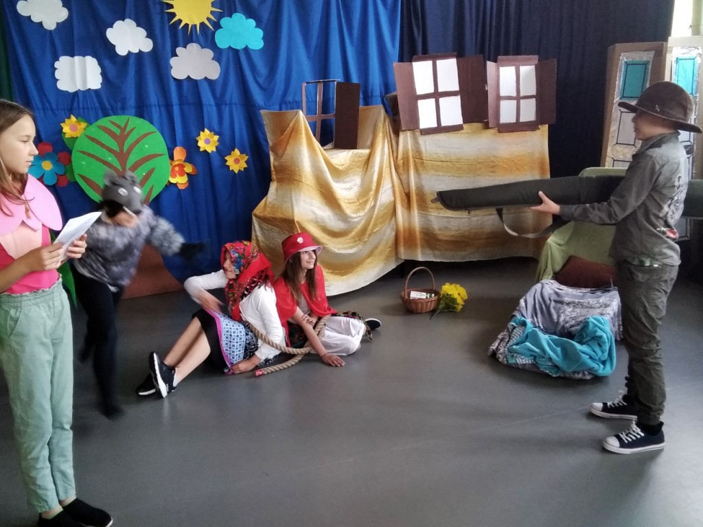 Uczniowie klasy 4 pod kierunkiem wychowawczyni pani Anny Palarskiej przygotowali spektakl dwujęzyczny (angielsko – polski) pt. „LITTLE RED RIDING HOOD” czyli „Czerwony Kapturek”.