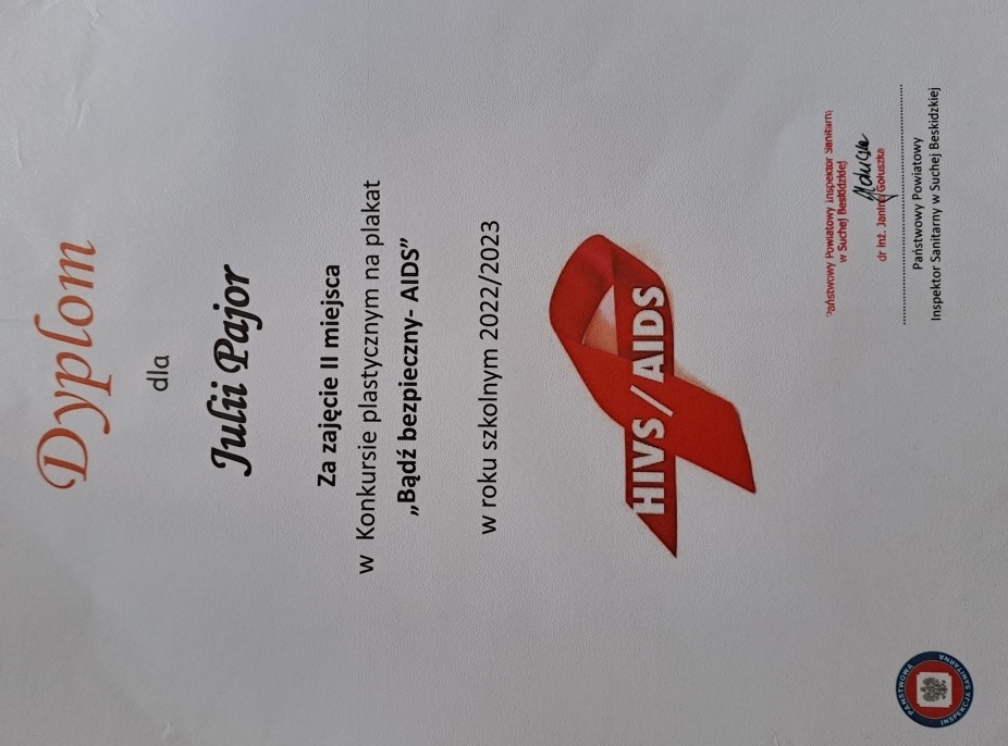 W dniu 26 kwietnia 2023 r. w Powiatowej Stacji Sanitarno-Epidemiologicznej w Suchej Beskidzkiej rozstrzygnięto powiatowy konkurs plastyczny na plakat pt.: "Bądź bezpieczny - AIDS".