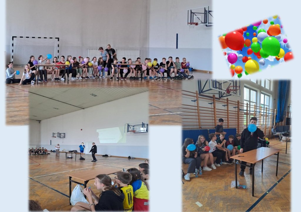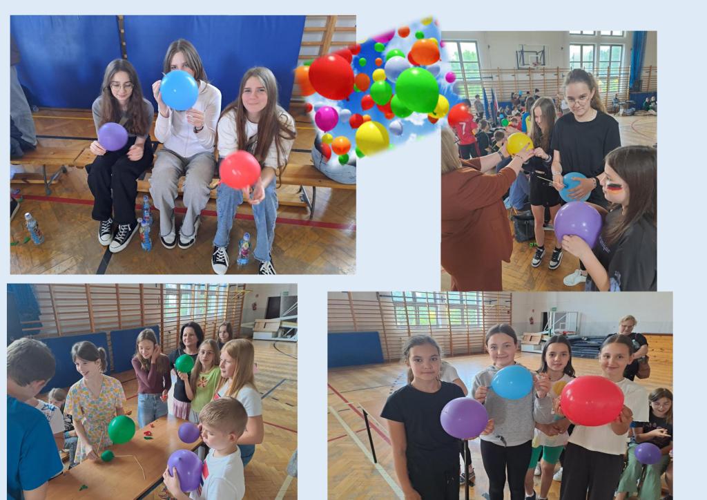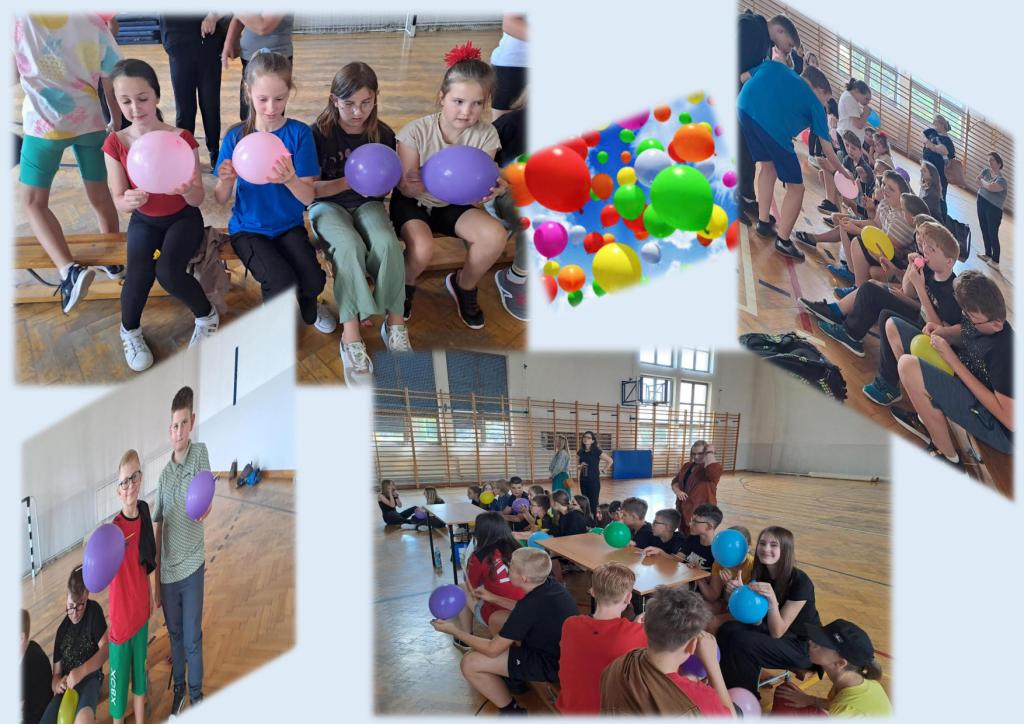 W dalszej części uczniowie klas 1-3 udali się na szkolne boisko, na którym wyrosło nadmuchiwane miasteczko. Wesołe harce na dmuchanych zjeżdżalniach wywoływały uśmiech na twarzach najmłodszych.