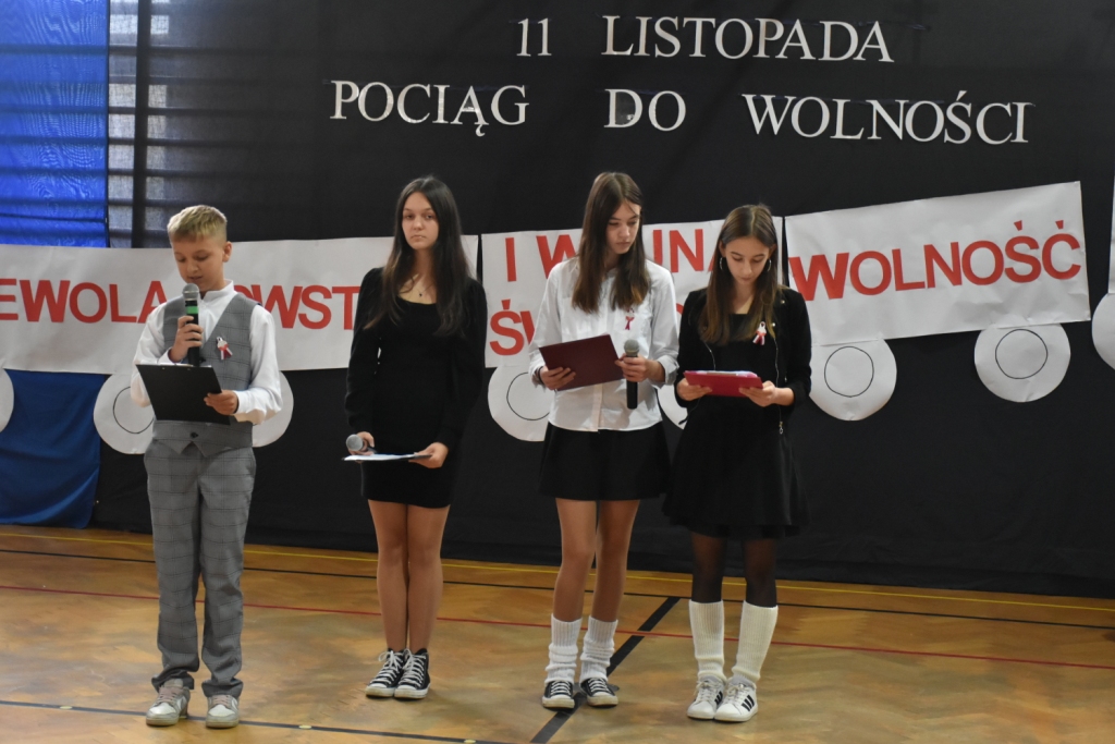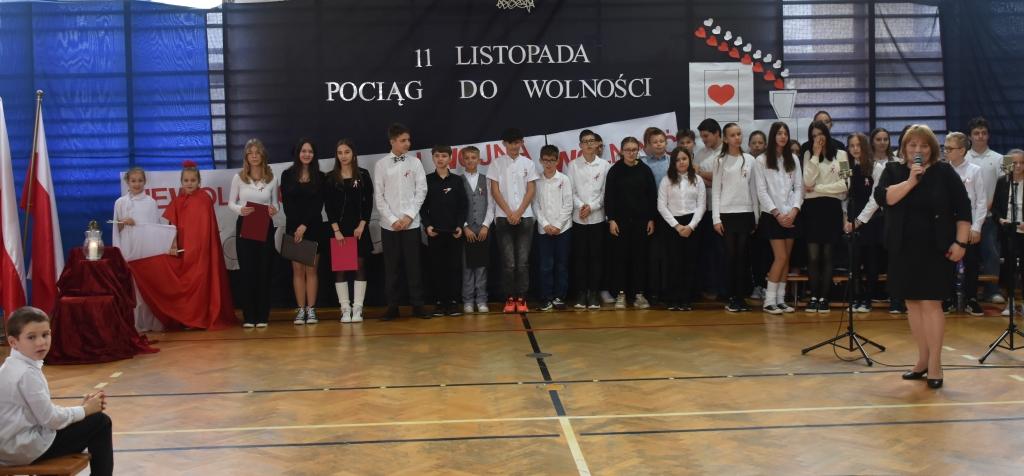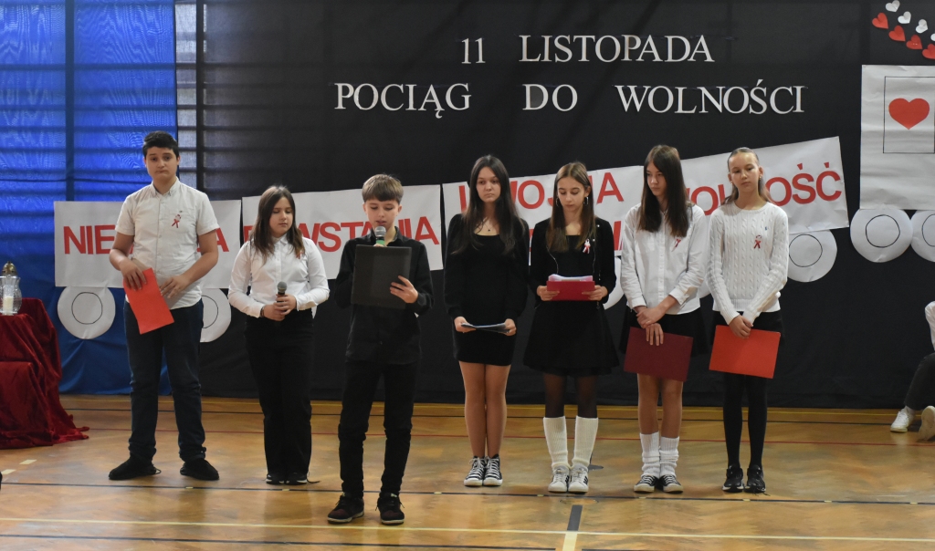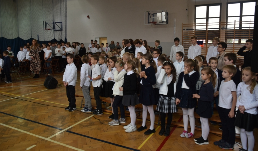 Z tej okazji w naszej szkole 8.11.2024 r. odbyła się akademia, podczas której uczniowie klasy VII przypomnieli 123 lata niewoli narodu polskiego i jego dążenia do odzyskania niepodległości. Na zakończenie uroczystości wszyscy uczniowie oraz przedszkolaki odśpiewali HYMN POLSKI biorąc udział w kolejnej akcji Ministerstwa Edukacji Narodowej” Szkoła do hymnu”.