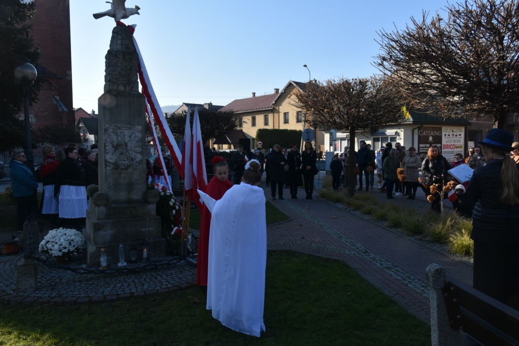 Nauczyciele, uczniowie, Koło Gospodyń „Mioduszyna” oraz Orkiestra Dęta „ Rytm” zabrali nas w podróż po naszej trudnej, ale i pięknej historii. Mroczny czas zaborów, smutek naszych przodków, którzy marzyli o niepodległym kraju, wreszcie radość i duma, bo oto spełnia się wielkie marzenie wielu pokoleń Polaków ! Te wszystkie emocje oddali nasi artyści. Wspaniała patriotyczna poezja oraz pieśni śpiewane przez uczniów, Koło gospodyń budowały podniosły nastój i sprawiały, że niejedna łza pociekła po policzkach licznie zgromadzonej publiczności. Ważnym punktem obchodów był apel poległych, po którym przedstawiciele władz gminy – Wójt Pani Joanna Stypuła, Przewodnicząca Rady Gminy Pani Agnieszka Karcz , Rady Powiatu pan Piotr Talaga, przedstawicieli Koła Gospodyń „Mioduszyna” oraz uczniowie Zespołu Szkół w Zembrzycach złożyli wiązanki i zapalili znicze, oddając hołd poległym. Pani dyrektor Elżbieta Fidelus skierowała wiele pięknych słów do twórców tej uroczystości, dziękując wszystkim zaangażowanym w przygotowanie a wszystkim zgromadzonym na uroczystości za obecność. Wspaniałą oprawę stanowiły dumnie powiewające flagi i kotyliony na piersi zebranych. Obchody zakończył koncert Orkiestry Dętej „Rytm”.