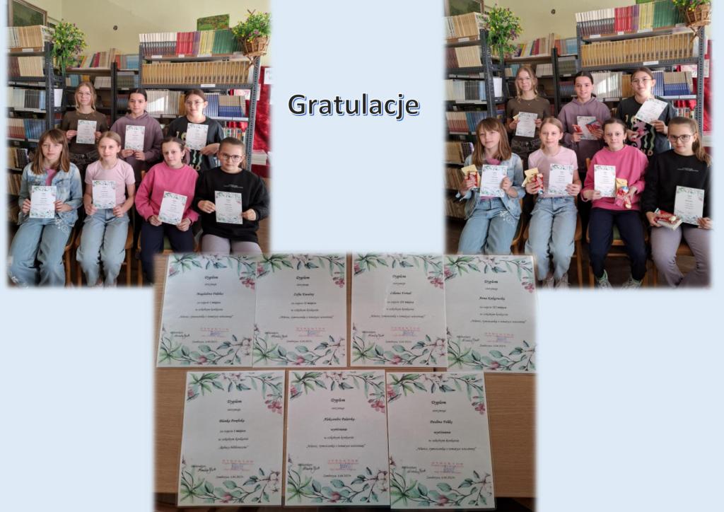 11 kwietnia 2025r. odbyło się podsumowanie bibliotecznych konkursów, które zostały przeprowadzone w dwóch kategoriach w ramach akcji „Budzimy wiosnę z ulubioną książką”.