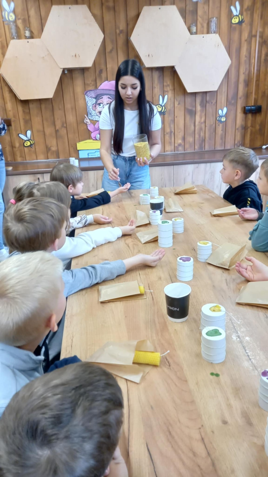 W związku ze zbliżającym się Dniem Pszczół (20 maja) przedszkolaki z oddziału „0” wzięły udział w wycieczce do Apilandii – Interaktywnego Centrum Pszczelarstwa w Kleczy Dolnej. Zwiedzając muzeum dzieci dowiedziały się, że pszczoły to nie tylko miód i żądlenie. Dzięki nowoczesnym rozwiązaniom, każdy mógł poznać sekrety pszczół i pracę pszczelarza. Podczas zajęć praktycznych dzieci wykonały świece z wosku lanego i węzy pszczelej, degustowały miód, a także obserwowały pszczoły w przeszklonych ulach.