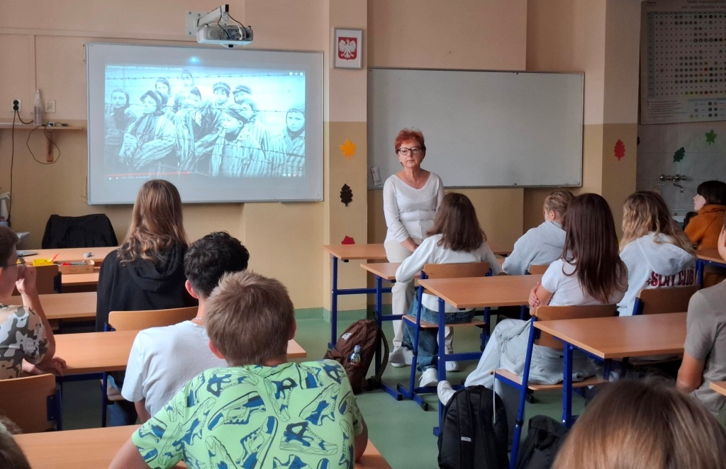 8 października 2025 roku, w naszej szkole odbyło się niezwykłe spotkanie dla uczniów klas VII i VIII, które na długo pozostanie w ich pamięci. Gościliśmy panią Annę Lorek, emerytowaną pedagog, która podzieliła się osobistą i poruszającą historią swojego ojca – byłego więźnia niemieckiego nazistowskiego obozu koncentracyjnego Auschwitz.