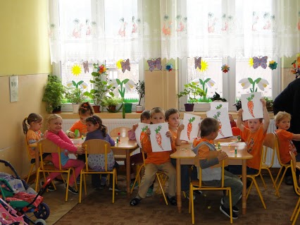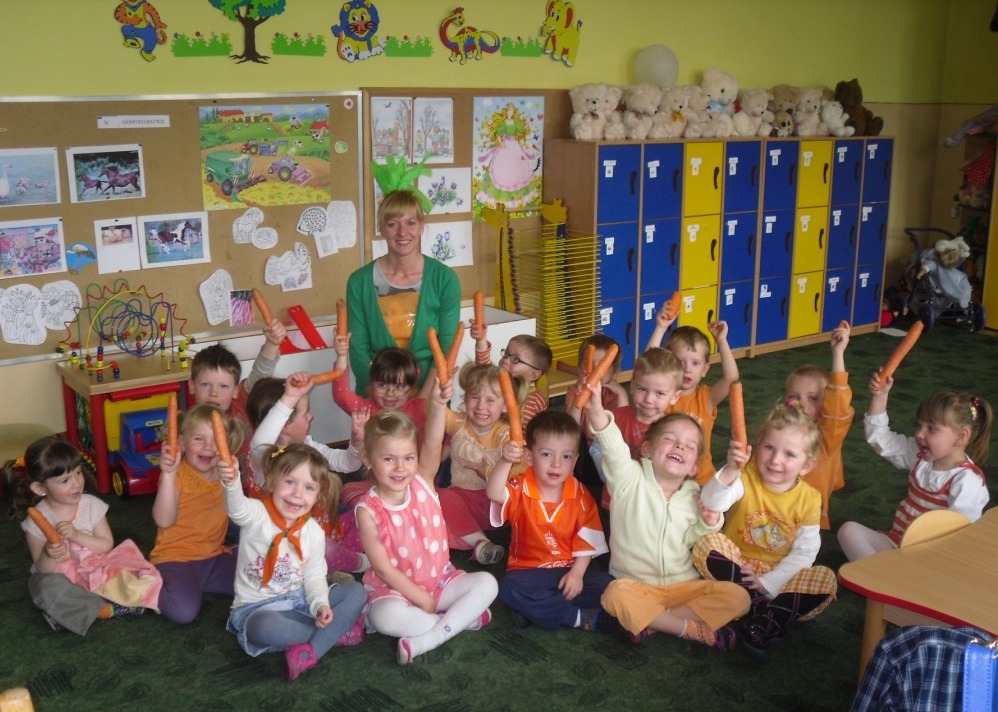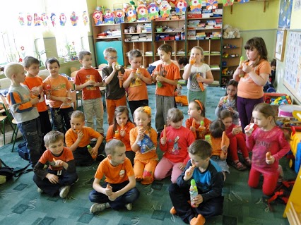 W miesiącu kwietniu w naszym przedszkolu obchodziliśmy Dzień Marchewki, ponieważ nasze przedszkole uczestniczy w projekcie " Kubusiowi Przyjaciele Natury". Dzieci przyszły ubrane na pomarańczowe i przyniosły ze sobą marchewkowe przysmaki, same też wypowiadały się w jakiej postaci lubią najbardziej to zdrowe warzywo.